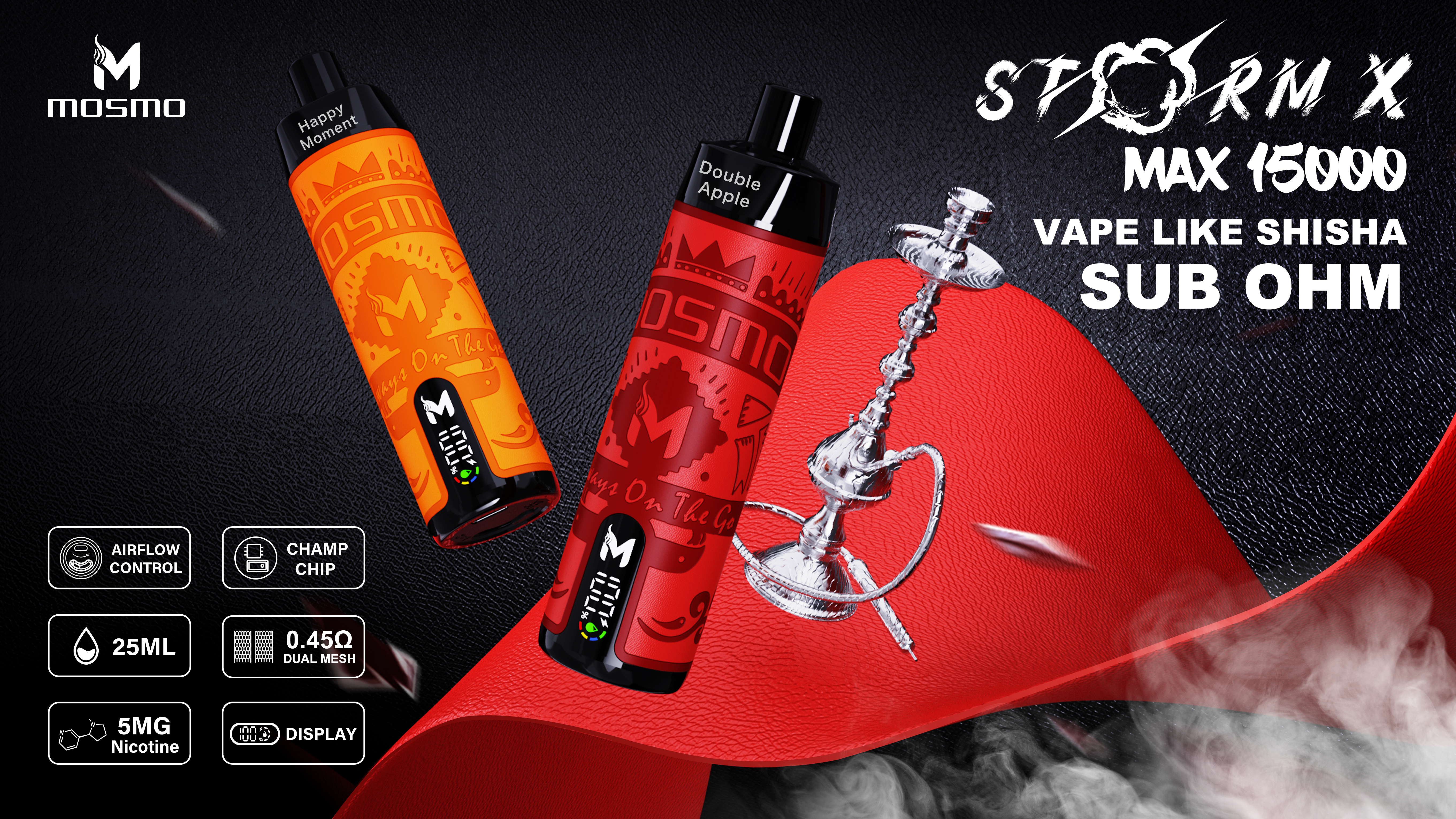 Since the launch of the first leather-surface DTL disposable vape product, STORM X, in 2022, MOSMO's DTL disposable vape products have gradually entered the global vape market, leading the trend of hot sales of DTL disposable vape products.